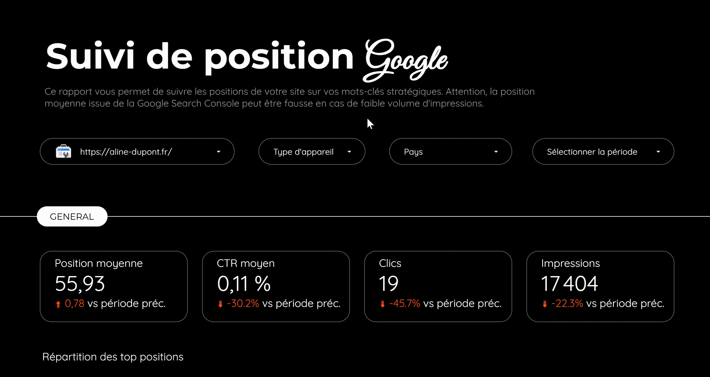 [SEO] Motion : Suivez vos Positions sur Google (Mots-clés) - Looker Studio Dashboard